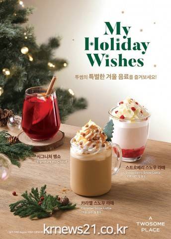 ‘카라멜 스노우 라떼’는 카페라떼에 마스카포네 치즈의 풍미를 더한 음료 위로 생크림을 올리고, 그 위에 크런치 알갱이와 트리 모양의 초콜릿을 토핑 해 낭만적인 크리스마스트리를 연상케 한다. ‘스트로베리 스노우 라떼’는 새콤달콤한 딸기와 고소한 우유를 혼합한 스트로베리 라떼 위에 푸짐하게 생크림을 얹고, 화이트 초콜릿 컬과 붉은색의 라즈베리를 올려 눈 내리는 화이트 크리스마스의 설레는 분위기를 선사한다. 투썸의 겨울 시그니처 음료인 ‘시그니처 뱅쇼’는 깊은 레드 와인의 맛과 달콤한 과일향이 조화롭게 어우러진 음료로 오렌지·레몬 등 상큼한 과일과 시나몬 스틱을 넣어 진하고 달콤 쌉싸름한 맛을 낸다. 특히 투썸플레이스의 뱅쇼는 무알콜로 출시돼 누구나 부담 없이 즐길 수 있는 것이 특징이다.