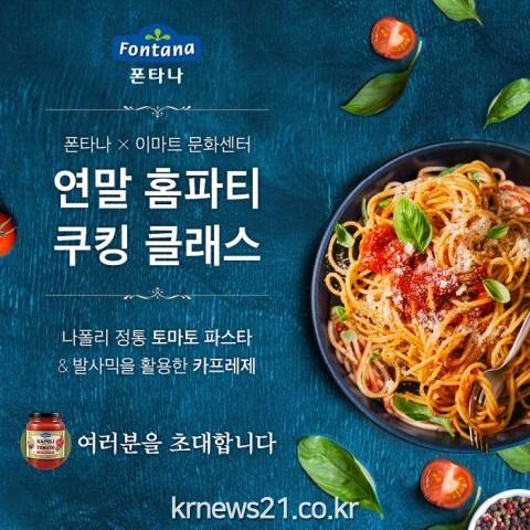 서양식 전문 프리미엄 브랜드 폰타나(Fontana)가 다가오는 연말을 맞아 ‘연말 홈파티’를 주제로 12월부터 전국 이마트 문화센터 83개 지점에서 쿠킹클래스를 진행한다.