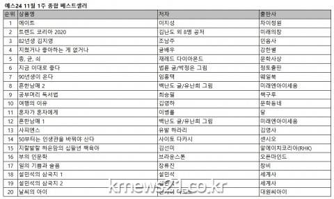 예스24 11월 1주 종합 베스트셀러