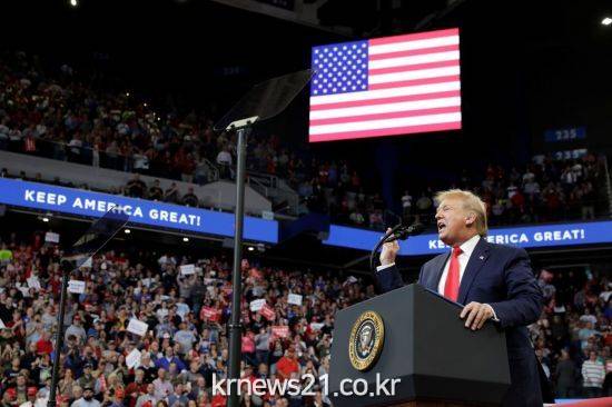지난 4일(현지시간) 지방선거를 앞둔 미국 켄터키주를 찾아 지지를 호소하고 있는 도널드 트럼프 미국 대통령의 모습