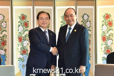 ▲ [사진제공 = 부산시]이에 대해 응우옌 총리는 “문재인 대통령의 고향인 부산에서 이번 정상회의를 개최하게 되어 뜻깊다”며 “부산시가 정상회의 준비를 잘 해줘서 많은 성과가 있을 것으로 기대한다”고 화답했다.
