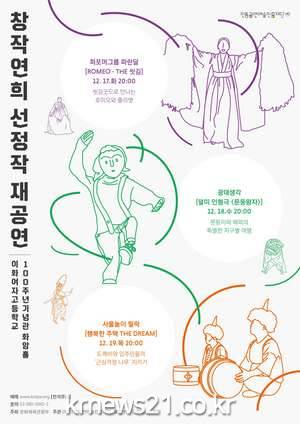 지난 5년간 ‘창작연희 작품공모’로 발굴된 작품 중 퍼포머그룹 파란달의 <로미오(ROMEO)-THE 씻김>, 광대생각의 덜미 인형극 <문둥왕자>, 사물놀이 필락의 <행복한 주택 - 더 드림(THE DREAM)>이 12월 17일(화)부터 19일(목)까지 이화여자고등학교 100주년기념관(화암홀)에서 관객과 재회한다.