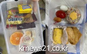 A씨가 함께 올린 사진에는 주먹밥과 유부초밥, 과자 등이 플라스틱 도시락 통에 담겨있다. 2만원 짜리 도시락이라고 보기엔 무리가 있는 수준이다.