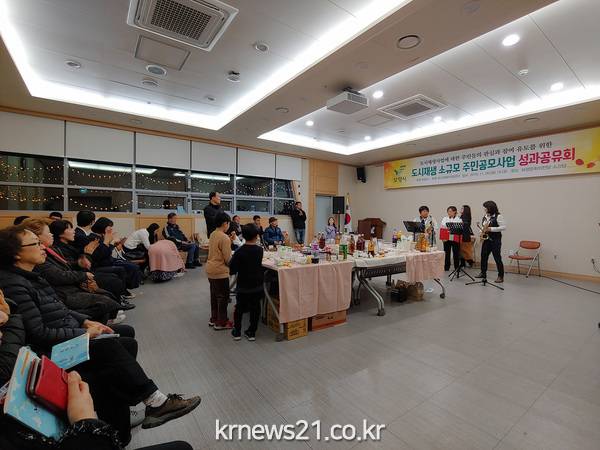 문홍배 도시재생과장은 “이번 성과공유회는 주민들이 도시재생사업의 주체로서의 인식을 높이고 성과물의 공유를 통해 다른 시민들의 참여를 이끌어내기 위해 마련한 것”이라며, “시는 내년도에도 소규모 주민공모사업에 더 많은 주민들이 참여할 수 있도록 다양한 사업 홍보와 교육 등을 추진해 나가겠다”고 말했다.