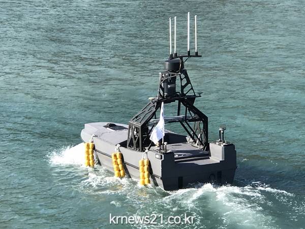 훈련 기간 가장 눈에 들어온 것은 무인수상정 ‘해검’이었다. 해검은 무게 3톤 길이 8m 규모로 30노트까지 속력을 낼 수 있다.