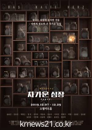 독일의 ‘슈바르츠발트’라는 작은 마을을 배경으로 “마음씨 착한 유리요정이 일요일에 태어난 아이에게 행운을 가져다준다.”는 이 환상적인 이야기는 한양대학교 연극영화과의 워크샵 공연에서 출발했다. 이후 올해 1월 성동문화재단 성수아트홀에서 공연되어 관객들에게 큰 호평을 받았으며, 약 7개월간의 업그레이드 과정을 통해 뮤지컬<차가운 심장> PART2. 가 탄생되었다.