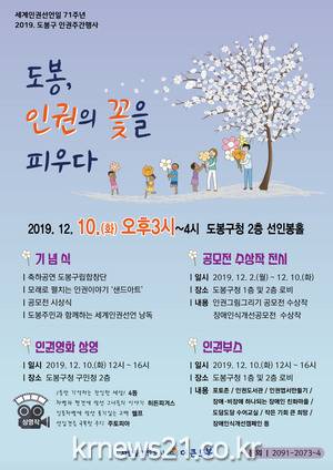 ▲ [사진=홍보포스터]도봉구(구청장 이동진)는 오는 12월 10일 구청 2층 선인봉홀에서 세계인권선언 71주년을 기념해 주민과 함께 인권을 이해하고 공감하기 위해 도봉구 인권주간행사 ‘도봉, 인권의 꽃을 피우다’행사를 개최한다.