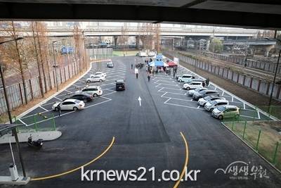 시는 주차장 조성을 위해 한국도로공사에서 관리하는 송내IC 북측 녹지대(상동 21번지 일원) 점용 승인을 받고, 시비 11억3천만 원을 투입해 최대 90대(일반차량 주차면 12대, 일반·대형차량 겸용 주차면 78대)까지 주차할 수 있는 총 주차면적 5,347㎡의 공영주차장을 조성했다.