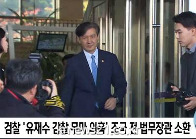 ▲ [사진출처 = SBS뉴스 캡처]검찰이 16일 유재수 전 부산시 경제부시장에 대한 감찰무마 의혹 수사와 관련해 당시 민정수석이었던 조국 전 법무부 장관을 피고발인 신분으로 소환해 조사 중이다.