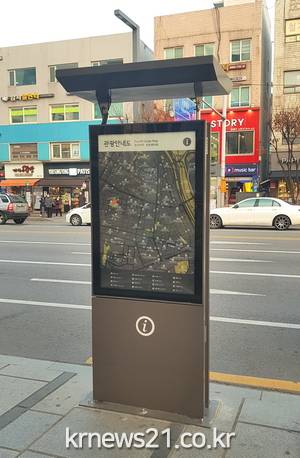 특히 안내 표지판 상단에 태양광 전자 패널을 설치해 일몰 후 LED 불빛이 자동 점등되며, 뒤편에는 서울 전역의 관광정보를 편리하게 접할 수 있는 서울관광 홍보 사이트를 안내했다.