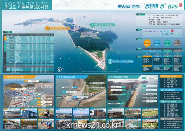 올해 선정된‘바닷길이 열리는 섬 안의 섬 장고도’는 ▲선양장 구조(1650㎡) 및 접안시설 개선 ▲명장섬 바닷길 및 해송 어울림 정원 조성 ▲체험관광 지도사 양성 및 바다마을 기념품 발굴 ▲어촌 독살복원 및 해당화뷰티상품 개발 등에 109억2800만 원을 투입하게 된다.