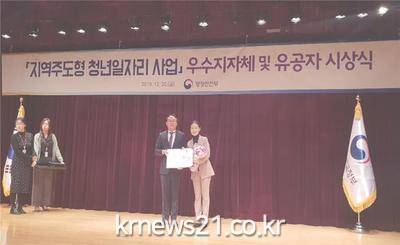 ▲ [사진제공 = 부산시]부산시(시장 오거돈)는 12월 20일 행정안전부로부터 ‘지역주도형 청년일자리 사업’ 성과창출에 이바지한 공을 인정받아 우수기관 표창을 받았다고 밝혔다.