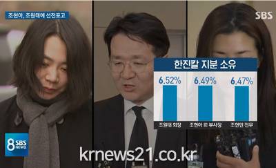 ▲ [사진출처 = SBS뉴스 캡처]고(故) 조양호 전 한진그룹 회장이 작고 한지 8개월. “가족이 협력해 사이좋게 회사를 이끌라”는 유지가 무색하게 한진가(家)에서 경영권을 둘러싼 ‘남매의 난’이 시작됐다.