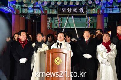 타종식은 호국종각에서 조규일 진주시장을 비롯한 지역 국회의원, 다문화가정, 청년대표 등 각계각층의 시민대표가 모여 모두 33번 종을 울린다.