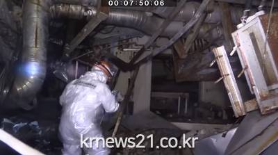 규제위 직원들은 흰 방호복과 방독면, 헬멧, 장갑을 착용한 채 손전등을 비추며 어둠 속 계단과 복도를 천천히 나아갔다. 하지만 방사선량 수치가 급격히 올라가 수시로 경고음이 울렸다. 한 구간에선 방사선량이 치솟자 직원 한 명이 “서둘러 통과하자”고 말하기도 했다.