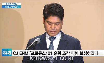 ▲ [사진출처 = SBS뉴스 캡처]CJ ENM이 프로듀스 시리즈 순위조작과 관련해 허민회 CJ ENM 대표이사가 엠넷(Mnet)의 ‘프로듀스X101’ 순위 조작 사태와 관련해 공개 사과했다.