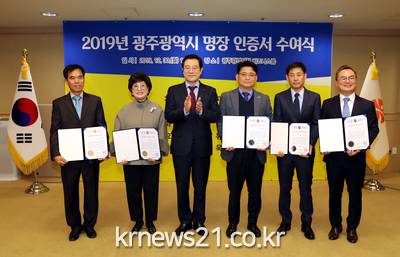 광주시는 30일 시청에서 이용섭 시장과 광주명장 5명이 참석한 가운데 ‘2019년 광주시 명장 인증서 수여식’을 개최했다.