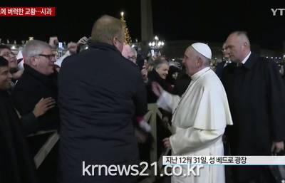 ▲ [사진출처 = YTN 뉴스 캡처]프란치스코 교황(83)이 자신의 손을 뒤에서 잡아당기고 놓지 않은 한 신도를 향해 화낸 것에 대해사과했다. 이에 대해 소셜 미디어에서는 설전이 오가고 있다.