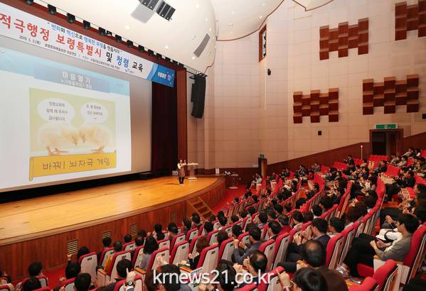 ▲ 적극행정 교육 장면보령시는 행정안전부로부터 충청남도 내에서 유일하게 적극행정 선도 자치단체로 선정되는 쾌거를 이룩함에 따라 2020년 새해에도 시민이 만족하는 적극행정에 박차를 가하기로 했다.