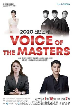 ▲ [사진=홍보포스터]인천시(시장 박남춘) 문화예술회관이 오는 1월 18일 오후 7시 ‘2020 신년콘서트 <보이스 오브 더 마스터스(VOICE OF THE MASTERS)>’를 문화예술회관 대공연장에서 선보인다고 밝혔다. 2020년 경자년을 맞아 파워풀한 가창력과 깊은 울림을 선사하는 보컬 마스터들이 한자리에 모여 2020년의 시작을 알린다.