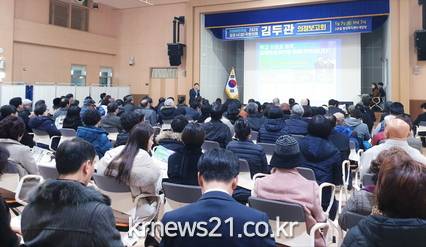 김두관 국회의원은 7일 저녁 7시, 고촌읍 행정복지센터에서 고촌·풍무 지역 의정보고회를 개최했다. 의정보고회에는 지역 주민 등 200여 명이 참석해 성황을 이뤘다.