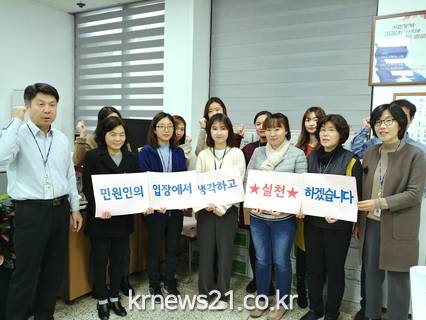 민원실 전 직원은 매월 친절도 자가진단 체크리스트를 작성하며 스스로의 친절도 점검 및 미흡항목에 대한 개선방안을 공유하고 동료직원의 친절 우수사례를 공유하고 있다.