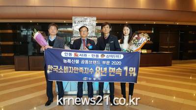 ▲ [사진제공 = 안동시]안동사과와 안동산약(마)이 경제전문매거진 한경비즈니스가 주최하는‘2020 한국소비자만족지수'선정에서 ‘8년 연속 1위’를 수상하는 영예를 안았다. 시상식은 1월 14일 서울 리베라호텔에서 열린다.
