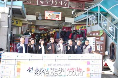광주광역시는 16일 KB국민은행 호남지역영업그룹과 양동시장에서 저소득 가정을 위한 ‘설맞이 전통시장 사랑나눔 행사’를 진행했다.