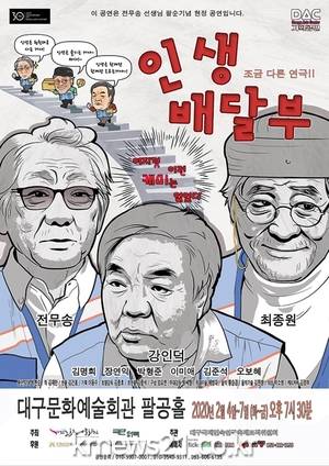 ▲ [포스터/극단하루 제공]대구문화예술회관은 극단 하루와 공동 주최로 2020년 2월 4일(화)부터 2월 7일(금)까지 대구문화예술회관 팔공홀에서 원로배우 전무송, 최종원이 출연하는 연극 <인생 배달부>를 무대에 올린다.