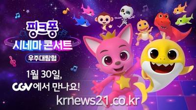 ▲ [이미지제공 = 스마트스터디]핑크퐁, 아기상어 등 글로벌 유·아동 콘텐츠 기업 스마트스터디(대표 김민석)는 자사가 배급하는 ‘핑크퐁 시네마 콘서트 : 우주대탐험’이 1월 30일 CGV 단독 개봉한다고 20일 밝혔다.