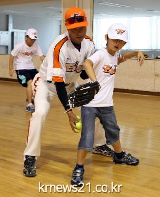 ▲ [사진출처 = 한화이글스 홈페이지]송진우 한화이글스 코치가 증평초등학교의 야구 유망주 강대호(12세, 남)·인호(10세, 남) 형제의 1일 코치를 자처하고 나섰다.