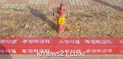김포시가 유사 시 신속한 소방활동 지원을 위해 100개소의 소방시설 주변 경계석과 가장자리에 적색표시 공사를 완료했다.