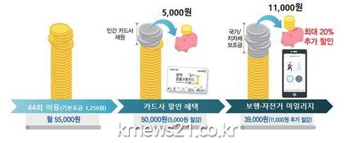 이 사업은 대중교통 이용 활성화와 국민 교통비 절감을 위한 것으로 대중교통 이용 시 보행‧자전거 이용 거리(1회 최대 800m 최고 250원 적립, 월 15회 이상 이용 시 적립금 사용 가능)만큼 마일리지를 지급하는 사업으로 국토교통부 주관하에 전국 13개 시․도와 101개 기초단체가 참여하고 있다.