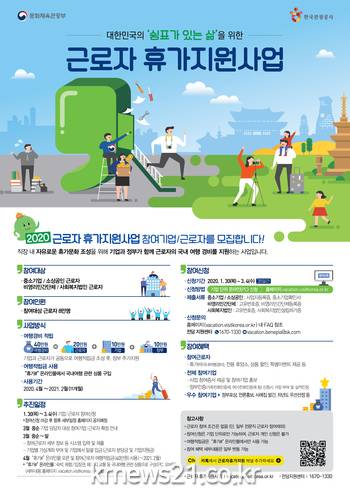 ▲ [사진=홍보포스터]문화체육관광부(장관 박양우, 이하 문체부)는 한국관광공사(사장 안영배)와 함께 1월 30일(목)부터 3월 4일(수)까지 ‘근로자 휴가지원 사업’에 참여할 중소기업 및 소상공인 등 근로자 8만 명을 모집한다.