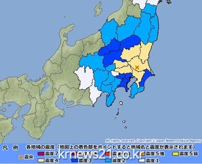 이 지진으로 이바라키현 북부와 남부, 도치기(栃木)현 남부, 사이타마(埼玉)현 북부와 남부, 지바(千葉)현 북서부에 진도 4의 강한 흔들림이 감지됐다.