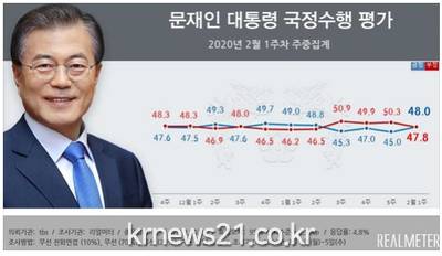 리얼미터 측은 "대통령의 신종 코로나바이러스 대처에 따른 효과"라며 "30대와 40대에서 전체 상승을 주도했다"고 분석했다.