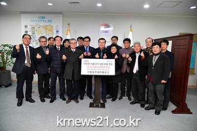 ▲ [사진제공 = 중랑구]중랑구(구청장 류경기)는 지난 2월 5일 중랑구청장실에서 서울동부새마을금고(이사장 강요원)와 ‘2020 희망온돌 따뜻한 겨울나기 사업’ 후원품 전달식을 가졌다고 밝혔다.
