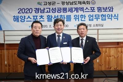 고성군과 경상남도체육회는 지난 4일 군청 소회의실에서 2020 경남고성공룡세계엑스포 홍보와 해양스포츠 활성화를 위한 업무협약을 체결했다.