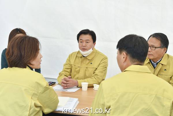 임 시장은 “무엇보다 방역이 가장 중요하다. 시흥시 전역에 걸쳐 샐 틈 없이 방역이 이뤄질 수 있도록 최선을 다 하겠다”며 “시흥시는 ‘원팀’이다. 현재 가장 걱정이 많은 곳이 매화동이기에 시장의 마음과 몸을 매화동과 함께 하겠다”고 말했다.