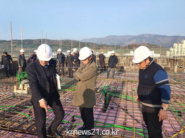 이번 점검은 공사품질 확보를 위해 동절기 시공실태 확인과 함께 사업추진에 여념이 없는 공사 관계자들을 격려하고 추진위원회의 의견을 청취하기 위해 이뤄졌다.