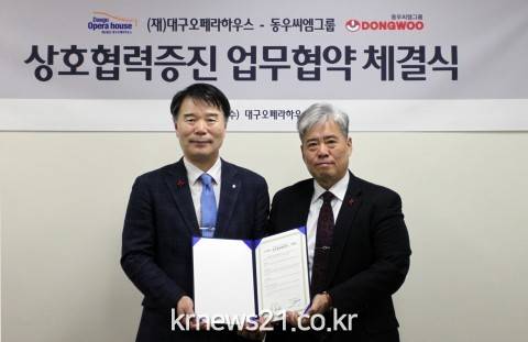▲ [사진제공 = 대구오페라하우스]대구오페라하우스는 2월 12일 오후 2시 동우씨엠그룹과 지역 공연예술 발전과 기업 내 문화예술 복지 향상을 위해 상호협력하는 내용의 업무협약을 체결했다.