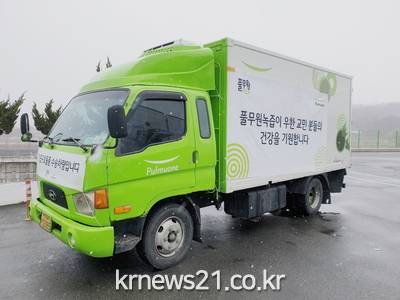 3차 귀국 우한 교민들에게 제공되는 녹즙은 풀무원녹즙 물류 차량 편으로 매일 아침 배송된다.