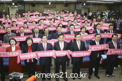 자유한국당, 새보수당, 전진당이 '1대1 합당' 형식으로 미래통합당을 창당했는데 새보수당, 전진당만 나와 인사하는 모습이 마치 흡수통합된 것 처럼 보인다는 것이다.