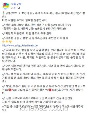 성동구 관계자는 "지역 내 감염 확산을 막고자 최선을 다하고 있다"며 "외출을 자제하여 주시고, 외출 시 마스크 착용, 손 씻기 등 개인위생 청결에 적극 협조하여 주시기 바란다"고 말했다.