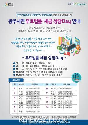 ▲ [사진=홍보포스터]광주시는 경제적인 이유 등으로 법률 및 세무전문가의 도움을 쉽게 받지 못하는 시민들을 위해 ‘광주시민 무료 법률·세금 상담 Day’를 운영한다고 18일 밝혔다.
