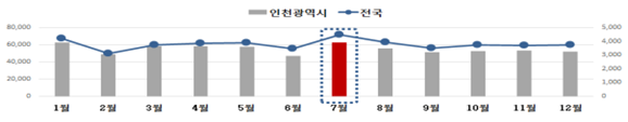 전체 41,129건에서 기초자치단체 확인이 가능한 16,464건 중 서구가 3,327건으로 가장 많았으며, 남동구(3,101건), 부평구(3,026건), 연수구(2,146건), 미추홀구(1,800건) 등의 순으로 접수되었다.