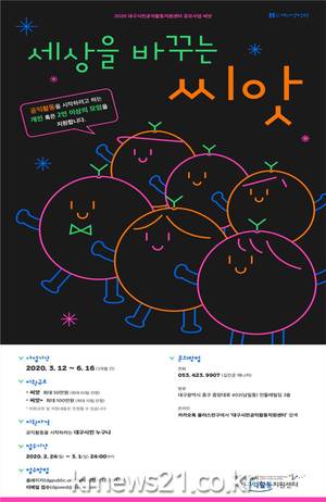 ▲ [사진=홍보포스터]대구시는 시민이 사회문제 해결을 위해 직접 공익활동을 할 수 있도록 지원하는 사업인 ‘씨앗’의 참가자를 공모한다.