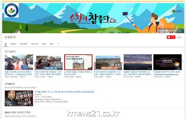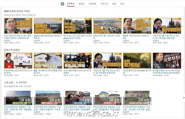 순창군이 지난해 10월 유튜브 채널인 `순창튜브`를 개설해 40여편 영상을 업로드하며 홍보에 열을 올리고 있다. 특히 지난 연말 제작된 `12월 국내여행, 순창으로 힐링여행 떠나기` 편은 조회수 10만을 넘어서는 등 높은 인기를 누리고 있다.