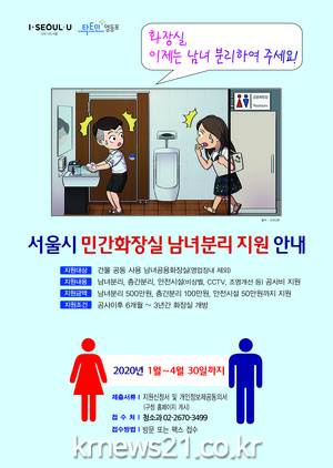 ‘남녀공용 화장실 분리’는 지역 내 민간 화장실 중 남녀 분리되지 않은 1층 화장실이면 지원받을 수 있다.