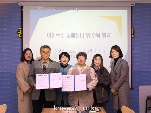 시흥시(시장 임병택)는 지난 27일 2020 신학기를 맞아 개소하는 아이누리 돌봄센터(복지부명: 다함께 돌봄센터) 운영을 위해 민간위탁자로 선정된 사단법인 더불어함께, 한마음이랑사회적협동조합과 위ㆍ수탁 협약을 체결했다.